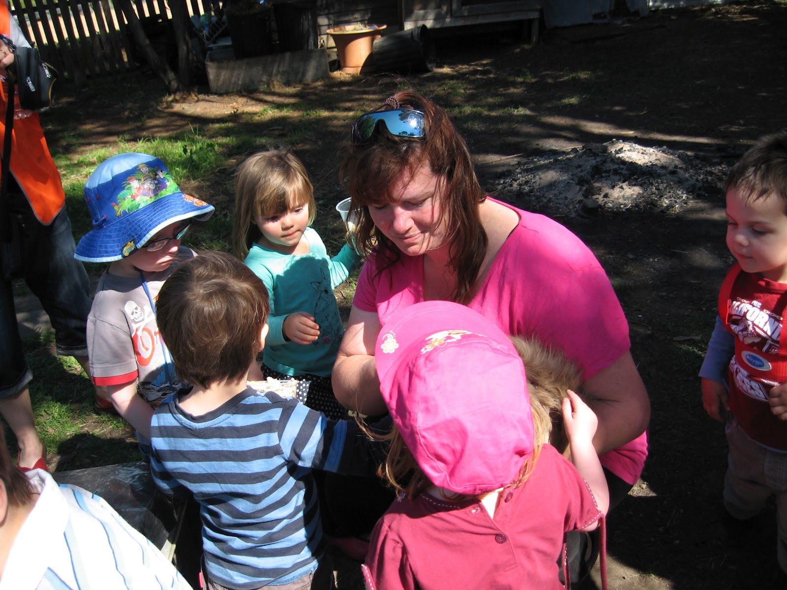 So, at the farm they got to see lots of animals! Ponies and horses, goats and kids, dogs, chickens and little chicks, sheep and lambs, a blue tongue lizard and her baby (who was already 12 months old), not-so-miniature pigs, and a rabbit or 2. At the end, all the children were given the opportunity to have a pony ride (Q wasn't too sure about it at first, but after watching other kids he wanted to have a go on the smaller of the 2 ponies). It was a good way to spend a glorious spring afternoon!